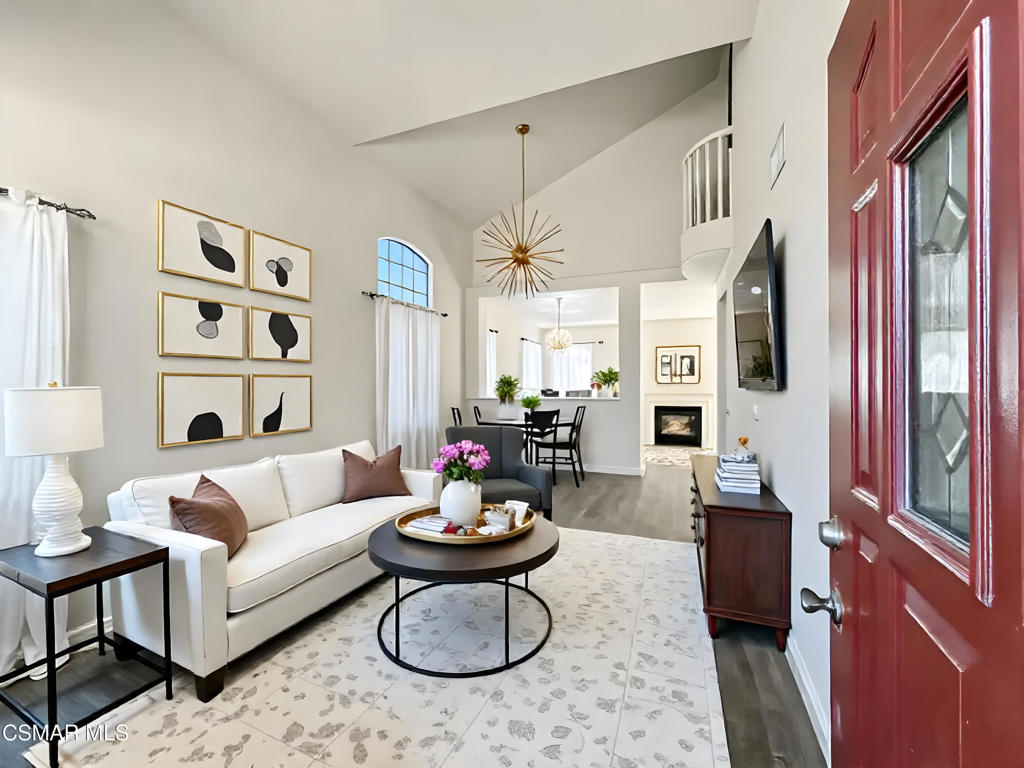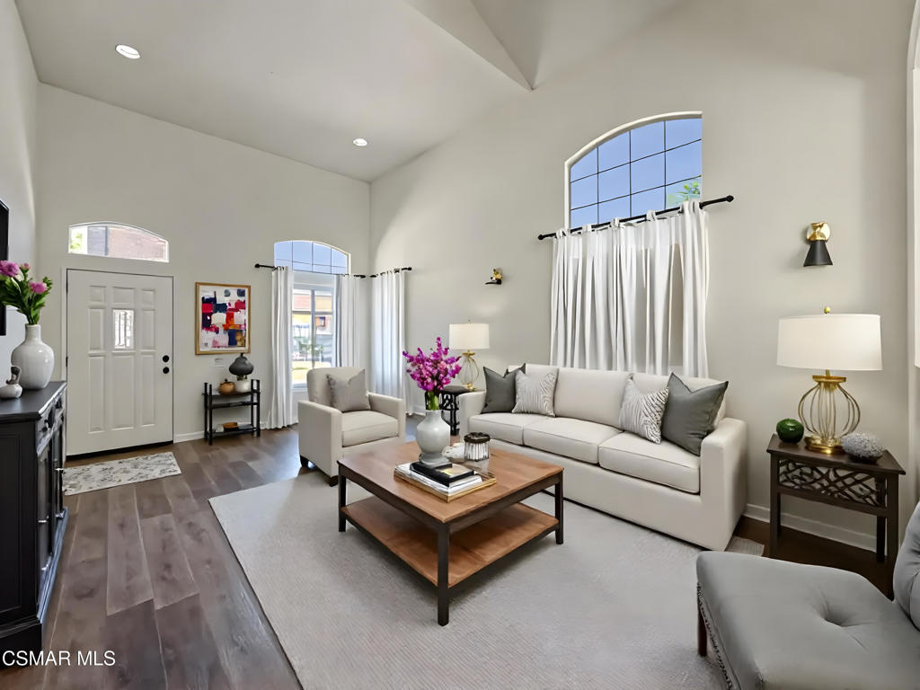 Welcome to 42 Skyflower Lane–an UPGRADED, LIGHT-FILLED home nestled in the highly desirable gated community of Parklane in Simi Valley! With a CORNER-LOT location, SOARING ceilings, charming finishes, and access to resort-style amenities including a sparkling pool, spa, sport courts, and playgrounds–this one truly has it all!Step through the entry and you’re immediately greeted by TOWERING two-story ceilings and a FLOOD of natural light. The Living Room feels grand yet inviting, appointed with upgraded wood-look flooring, tall windows dressed in plantation shutters, and a ample layout for both formal entertaining and relaxed evenings in.The adjacent Family Room / Dining Area enjoys a cozy is anchored by a charming gas fireplace and opens to the GREA Kitchen that is appointed with UPGRADED ceramic tile flooring, handsome cabinetry, and tile countertops. Sleek designer stainless-steel appliances include a NEW GE 4-burner gas range beneath a matching built-in microwave, and a double sink which overlooks the backyard. A FANTASTIC walk-in pantry adds incredible storage–rare in homes of this size and price point!A downstairs Powder Room is perfect for guests and flanks direct access to the 2-car garage, which includes FINISHED walls & ceilings!Upstairs, you’ll find three bedrooms and two full baths, all with upgraded finishes and clean, modern touches. The Primary Suite is a BRIGHT and spacious retreat, filled with light from tall windows with plantation shutters. The en-suite Primary Bathroom offers a sprawling dual-sink vanity, a tile-walled shower, a GRAND soaking tub, a private water closet, and a WALK-IN closet.Two Secondary Bedrooms provide comfort and charm, each with upgraded wood flooring, plantation shutters, and long closets with sliding wardrobe doors. A full Hall Bathroom includes a roomy built-in vanity, ceramic tile flooring, and a separate water room with tile-walled tub shower.The Laundry Room is conveniently located UPSTAIRS in its own dedicated room with INCLUDED washer & dryer–making daily chores easy and accessible!Step outside to your PRIVATE backyard patio–framed by TALL block privacy walls and offering paver-stone surfacing, ideal for al fresco dining, grilling, or creating your own outdoor lounge setup. Low-maintenance and highly functional, this backyard provides space to relax and unwind without the burden of high upkeep.The Parklane community is one of Simi Valley’s best-kept secrets–an established GATED neighborhood known for its peaceful feel, LOW HOA dues, and impressive amenities. Residents enjoy access to a resort-style pool & spa, TWO basketball courts, lush green belts, and a kids’ playground just around the corner. With no neighbor to the left, this CORNER LOT location enhances privacy and provides rare breathing room.You’re also close to shopping centers, restaurants, parks, and scenic hiking/biking trails. Enjoy quick access to top-rated Simi Valley schools, and an easy commute via nearby freeways.Whether you’re looking for your first home, your next home, or a low-maintenance lifestyle in a secure, friendly community–42 Skyflower Lane is a must-see!