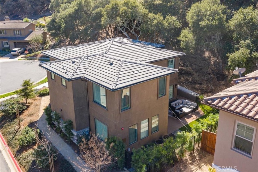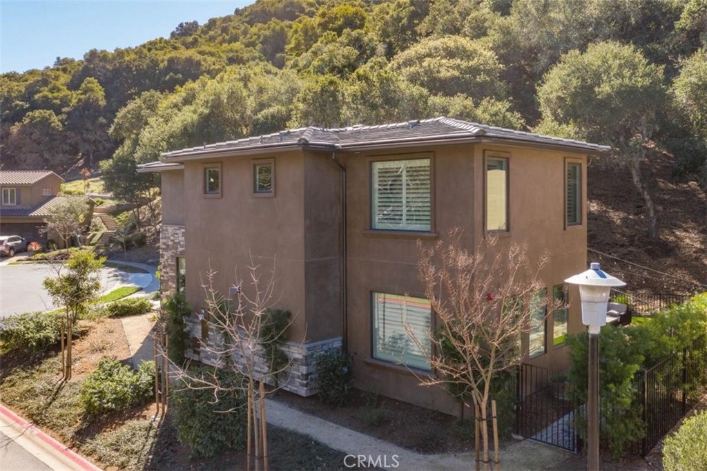 First time on the market— exceptional opportunity in prestigious Prefumo Canyon Estates. This semi custom contemporary -inspired residence boasts remarkable curb appeal, with a grand double-door entry flanked by cypress trees and surrounded by mature, thoughtfully designed landscaping. The stone-accented stucco façade is timeless, while a spacious driveway and attached two-car garage with epoxy flooring provide both functionality and style. The meticulously maintained backyard is a private sanctuary bordered by a wrought iron fence and oak-studded Irish Hills with a paved patio, creating an inviting atmosphere for gatherings or quiet afternoons outdoors. Inside the bright and airy interior is filled with natural light. The main living space features interior shutters, recessed lighting, and an electric fireplace with a built-in niche—ideal for displaying artwork or mounting a television. The open-concept layout seamlessly connects the living area to the gourmet kitchen, where a generous island with seating, abundant storage, and a dual-basin sink serves as the heart of the home. Pendant lighting, a decorative tile backsplash, and shaker-style cabinetry elevate the design, while premium stainless steel appliances—double oven, gas range with hood, refrigerator, beverage center, and dishwasher—provide exceptional culinary capability. The adjacent dining area looks out over the landscaped backyard, offering a peaceful backdrop for everyday meals and special occasions. A stylish half bath completes the lower level. Upstairs, a spacious bonus room and a dedicated office with custom cabinetry enhances the home’s functionality. A luxurious primary suite with French doors, a ceiling fan, and an expansive ensuite bath with dual sinks, dedicated vanity area, soaking tub, walk-in shower, and a large walk-in closet is a true retreat. The second bedroom showcases breathtaking views of San Luis Obispo and the Irish Hills, while the third bedroom offers tranquil, shaded outlooks. An additional full bath and a well-appointed laundry room with utility sink and storage complete the upper level. The property features energy-efficient solar panels. This is a rare offering in one of San Luis Obispo’s most sought-after neighborhoods. Every detail has been curated with precision and pride of ownership. Located minutes from local hiking, downtown, fine dining, boutique shopping, the regional airport, and everything that defines life on the Central Coast.